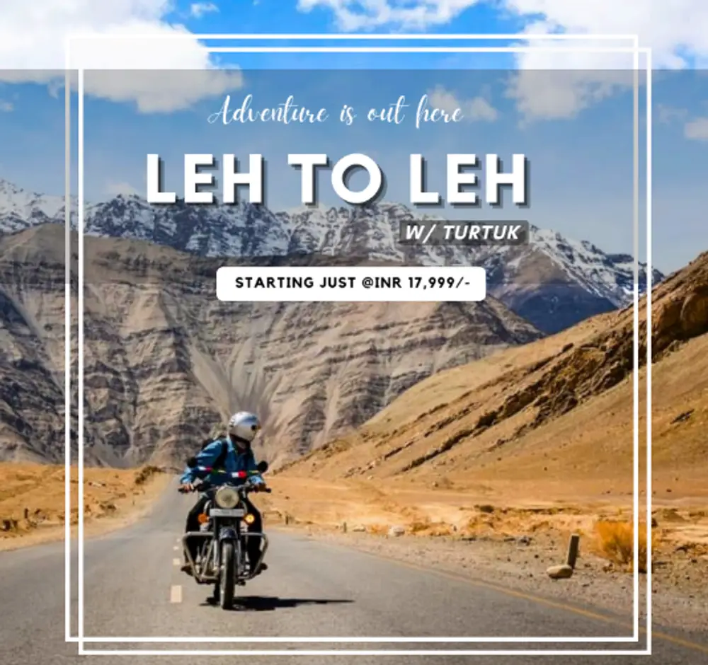 | Dual Rider | RE Himalayan Pillion (DS) | ₹26,143 per person | ₹22,745 per person | N/A | Leh Airport, Leh, India, Asia | Leh Airport, Leh, India, Asia | Breakfast, Dinner, Tour Guide, Tent, Driver Tips, Fuel, Mechanical Assistance, Bike, Valley View, Mountain View, Camp, 3 Star Accommodation |