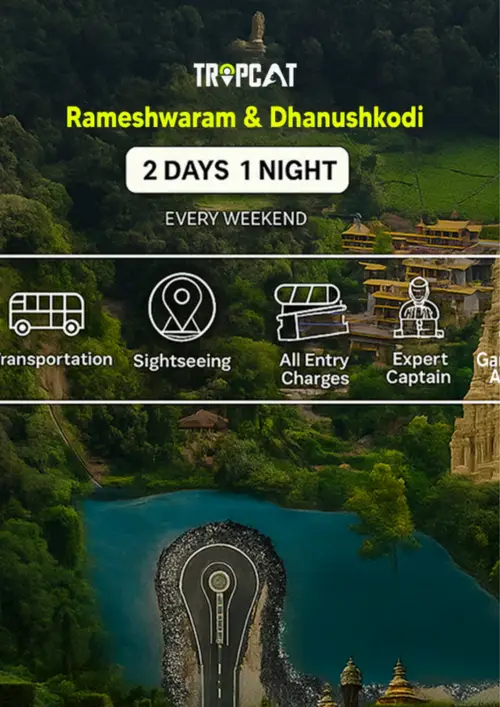 Explore the fascinating ruins of Dhanushkodi, a town ravaged by a cyclone, and relax on its pristine, untouched beaches.
